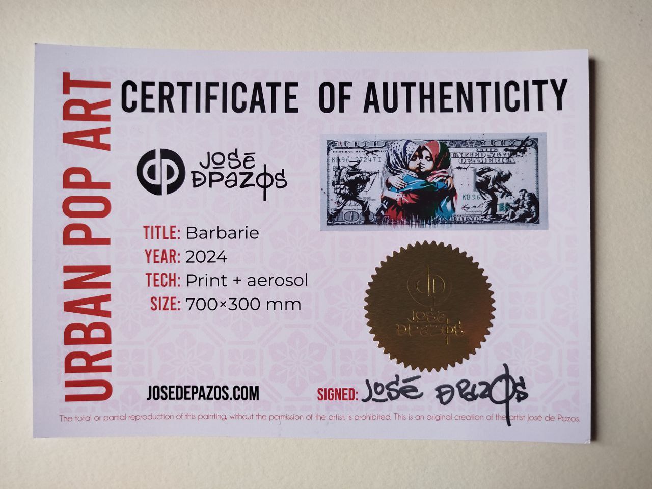 No es una reproducción masiva, solo existen dos unidades en el mundo. Es un print intervenido a mano con pintura en spray, lo que lo convierte en pieza única dentro de su serie.