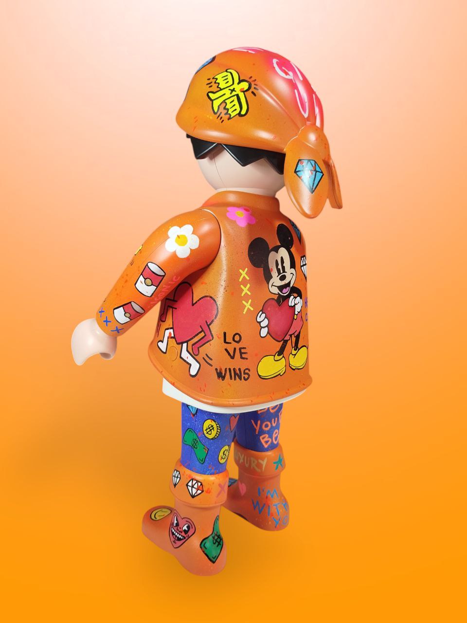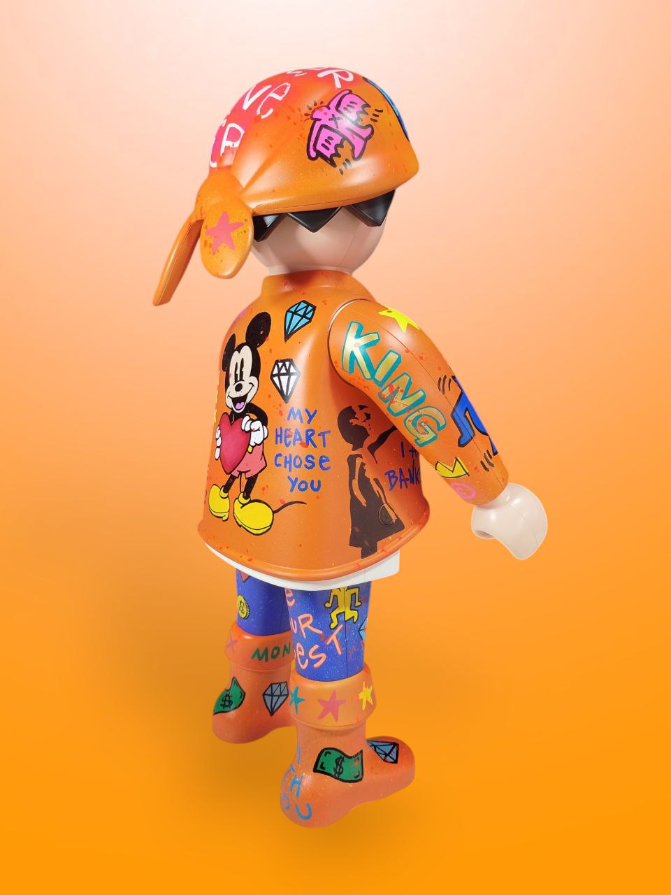 Trabajo con los clásicos Playmobil para darles una nueva vida. Me encanta coger estas figuras tan icónicas y transformarlas usando distintas técnicas y materiales, mezclando lo tradicional con lo contemporáneo. Para mí, los Playmobil son mucho más que simples juguetes; son piezas que cuentan historias nuevas y exploran temas como la identidad, el consumo y la memoria colectiva. Cada intervención es una forma de jugar y al mismo tiempo de hacer pensar, invitando a quien las vea a descubrir algo más allá de lo evidente.