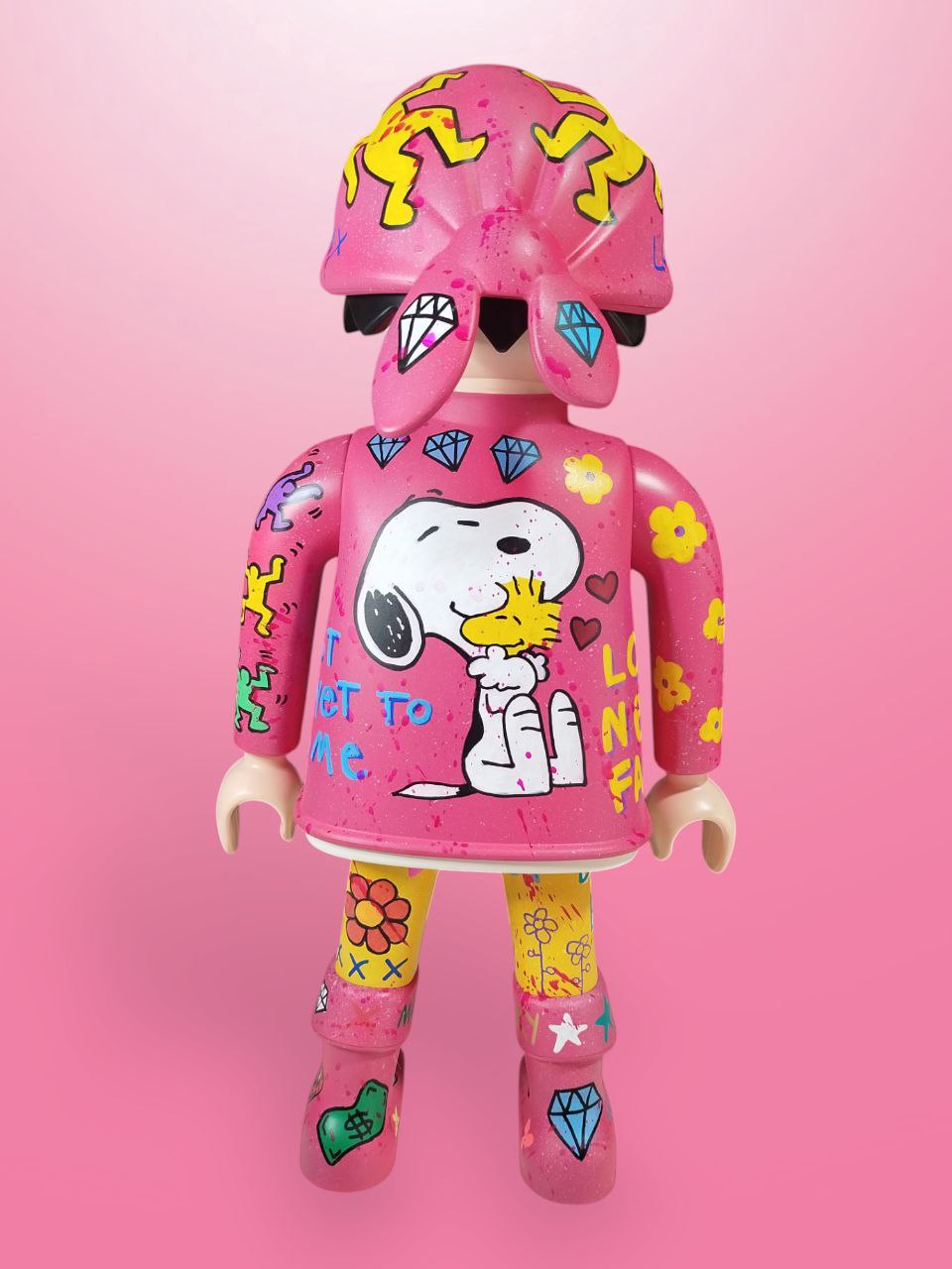 Trabajo con los clásicos Playmobil para darles una nueva vida. Me encanta coger estas figuras tan icónicas y transformarlas usando distintas técnicas y materiales, mezclando lo tradicional con lo contemporáneo. Para mí, los Playmobil son mucho más que simples juguetes; son piezas que cuentan historias nuevas y exploran temas como la identidad, el consumo y la memoria colectiva. Cada intervención es una forma de jugar y al mismo tiempo de hacer pensar, invitando a quien las vea a descubrir algo más allá de lo evidente.